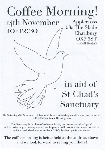 Sunday 21st October 2017: COFFEE MORNING